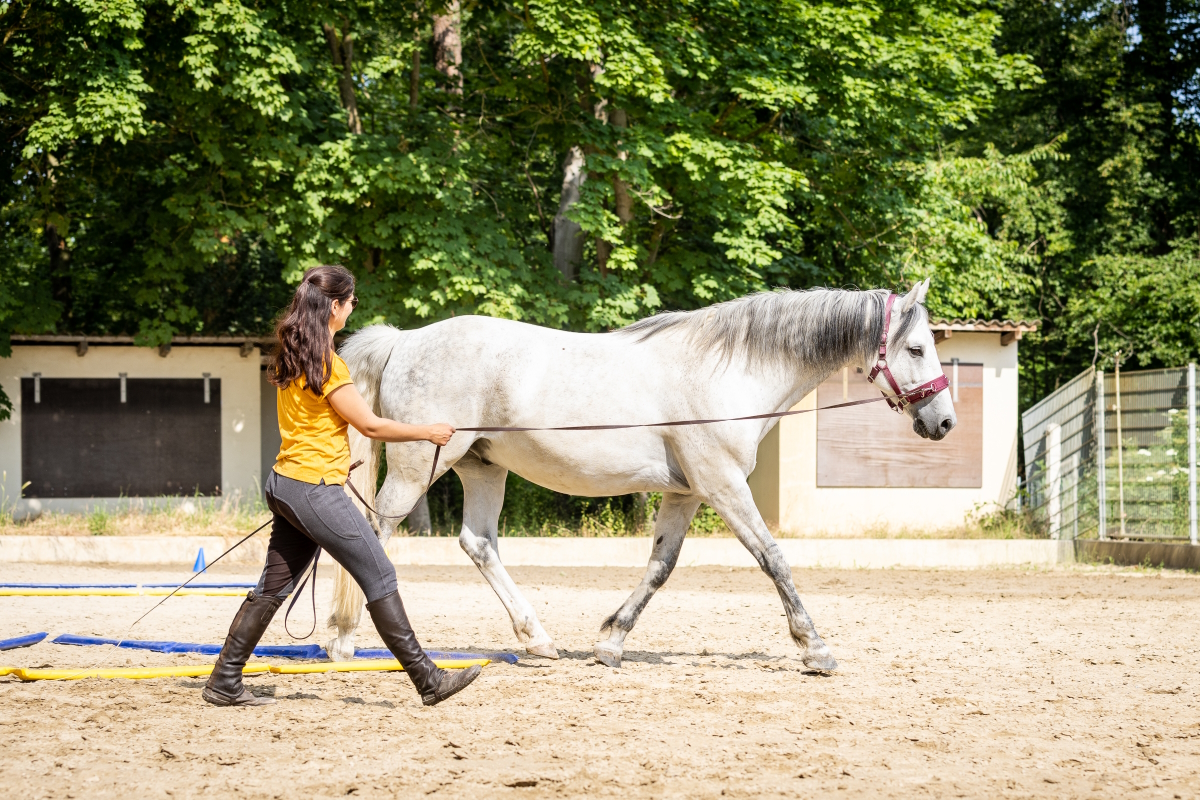 Durch ständige Handwechsel, Farbreize und gezielte Übungen wird die Konzentration, Balance und Koordination des Pferdes (und des Menschen) geschult. Gleichzeitig fördern wir die Bewegungsabläufe des Pferdes und es lernt, seine Hinterhand aktiv zu nutzen, baut tragfähige Muskulatur auf und kann so ein besseres Körpergefühl entwickeln. Auch in der Dualaktivierung trainieren wir in Intervallen, sodass das Pferd Zeit hat, das Gelernte in Pausen zu verarbeiten.